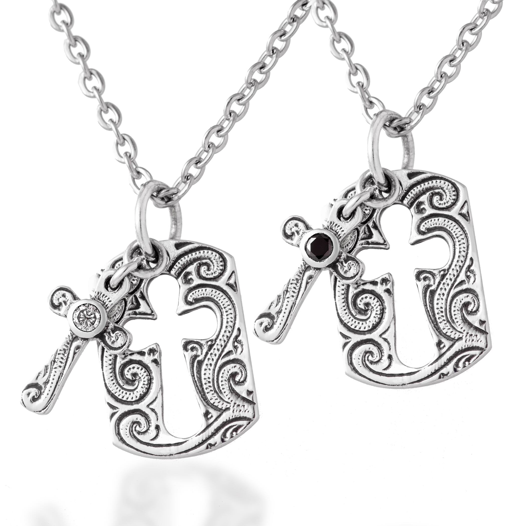 クロスには、ブラックとホワイトのジルコニアがそれぞれにセッティングされ輝きを添えています。