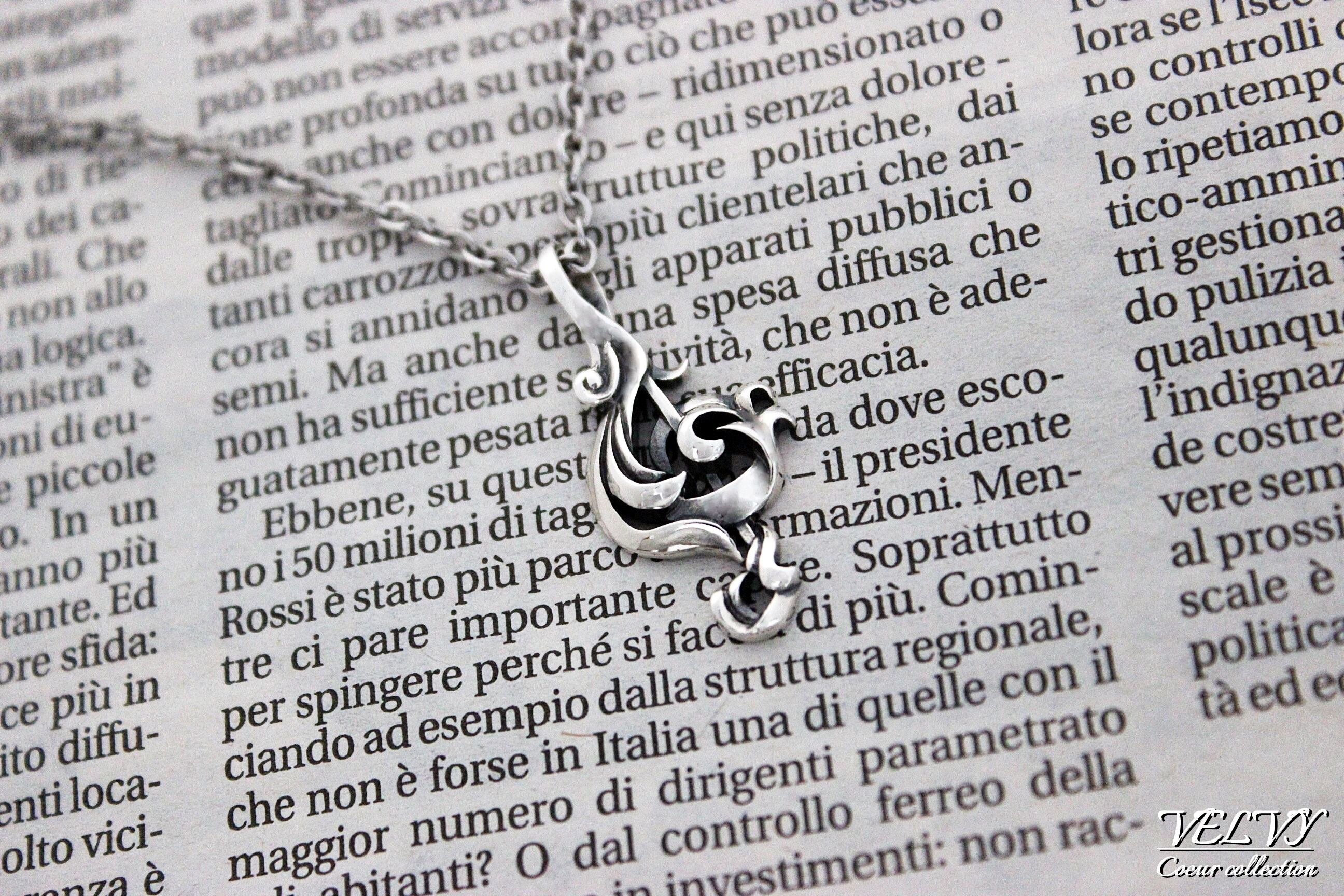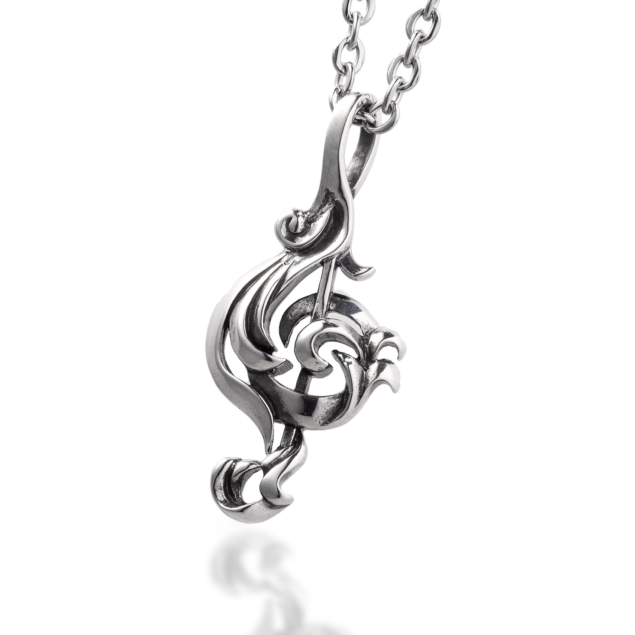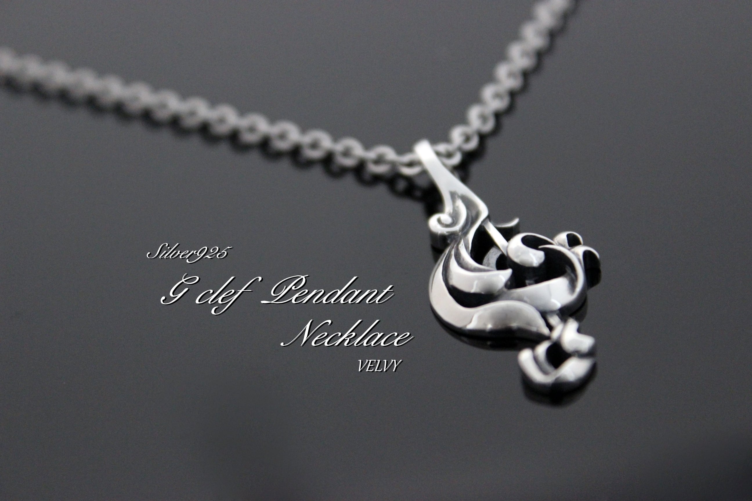 ト音記号がベースになった個性あふれるデザインのペンダントトップ。